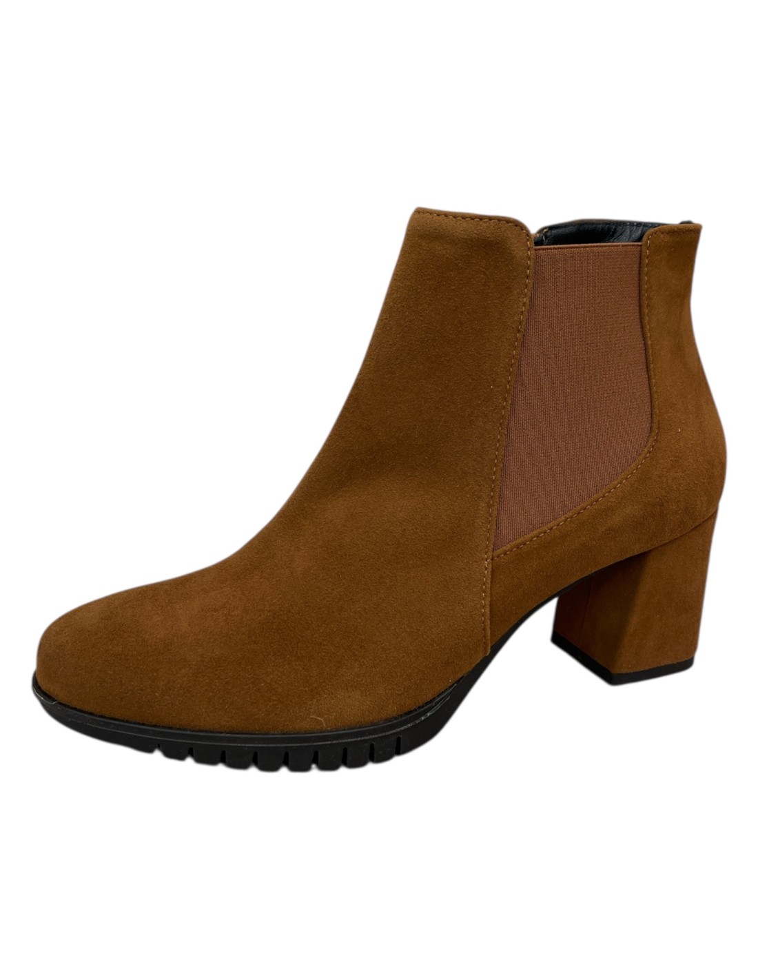 BettinStivaletto in morbido camoscio coloniale con tacco 5 cm, elastico laterale e chiusura a zip. La suola in gomma è leggermente più spessa per offrire stabilità e comfort superiore. Disponibile con taglie e mezzi numeri dal 36 al 41.